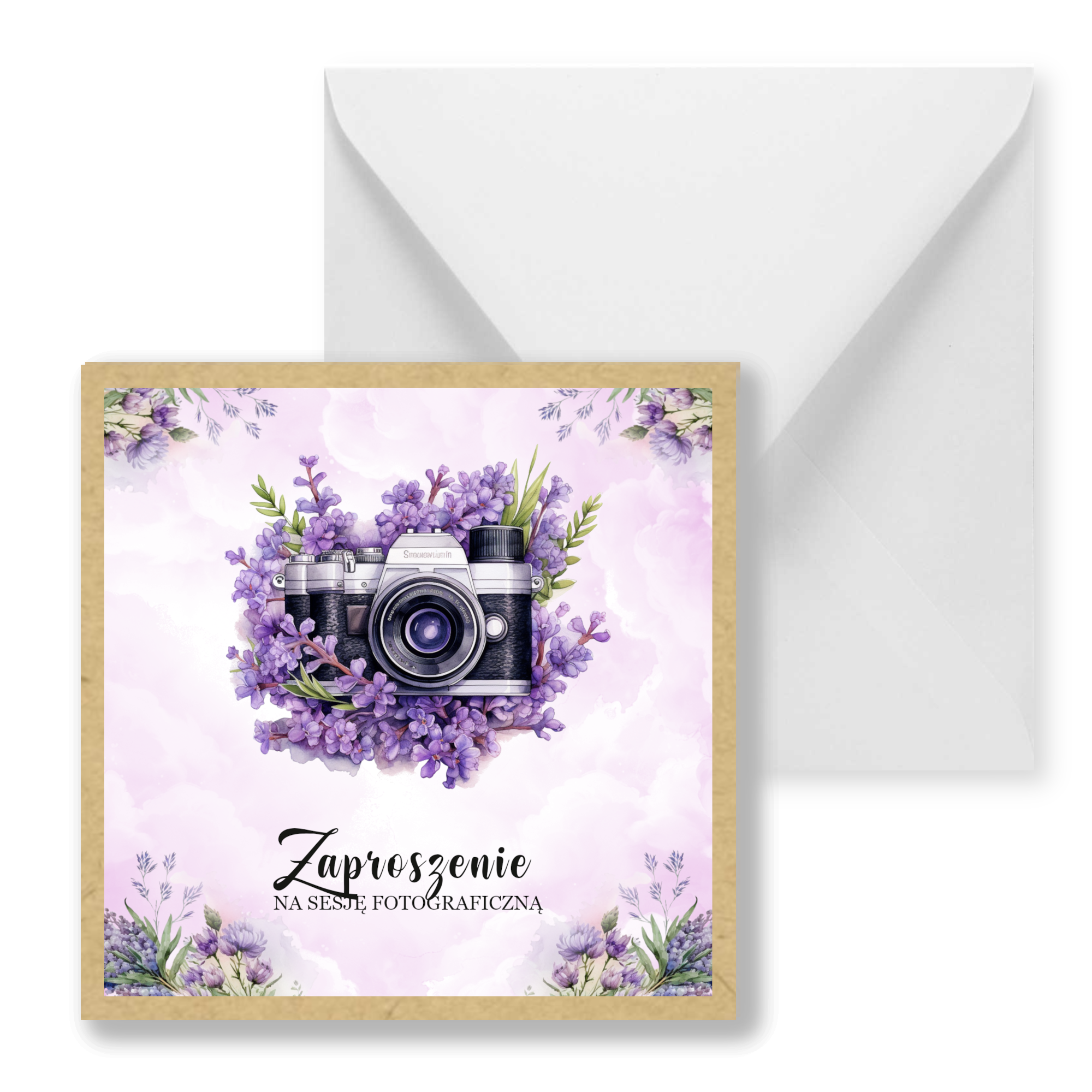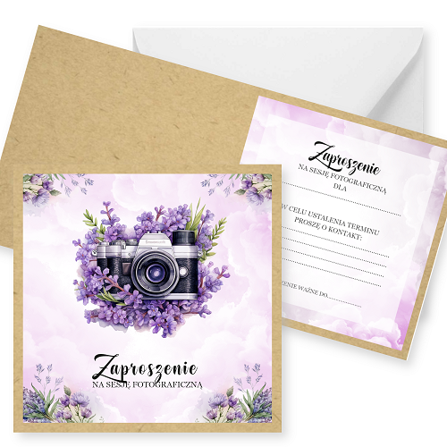 Zaproszenia na sesję na podkładzie eko z motywem graficznym. Format 14cm. W komplecie z białą kopertą.