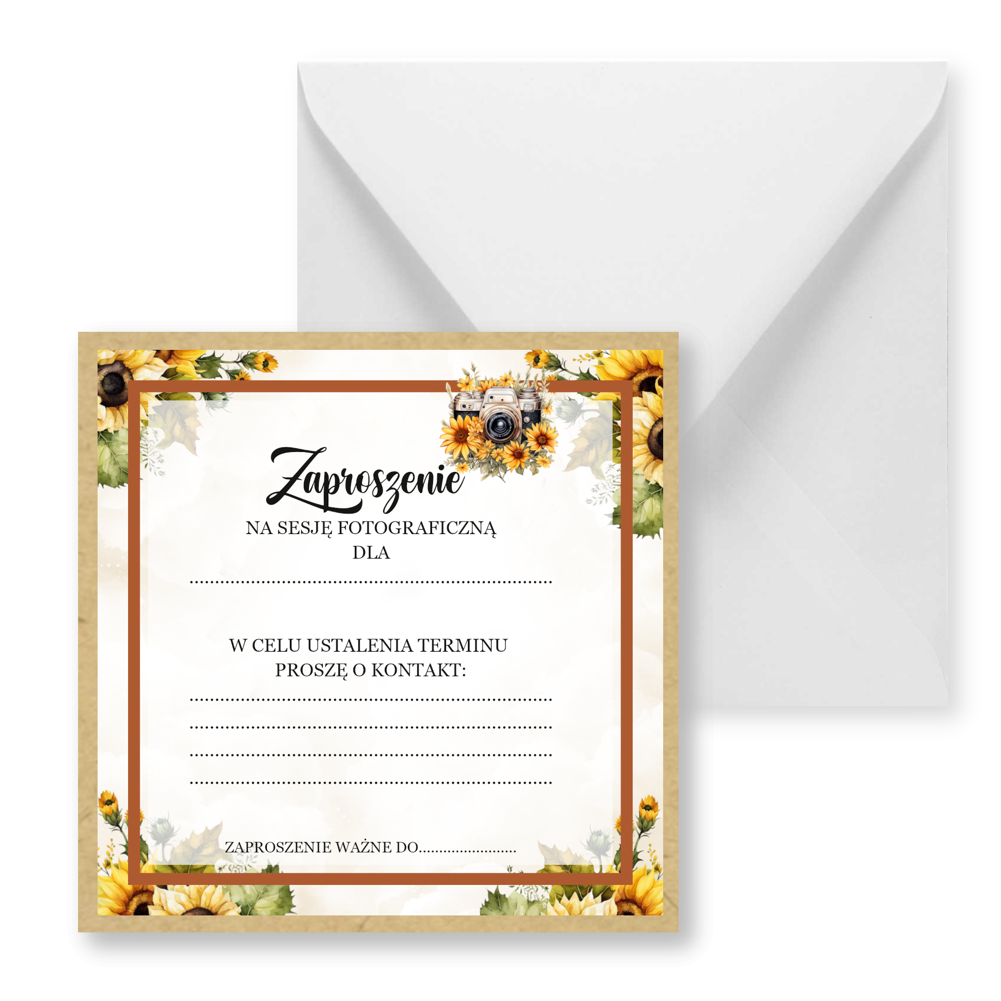 Jednokartkowe, jednostronne zaproszenia na sesję na podkładzie eko z motywem graficznym. Format 14,5cm. W komplecie z białą kopertą.