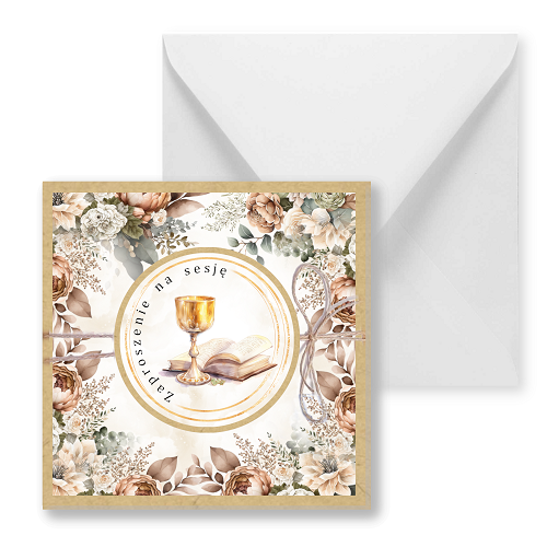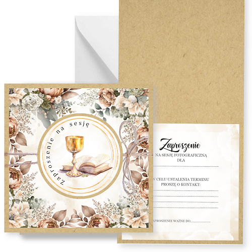 Zaproszenia na sesję na podkładzie eko z motywem graficznym. Przewiązane lnianym sznureczkiem.