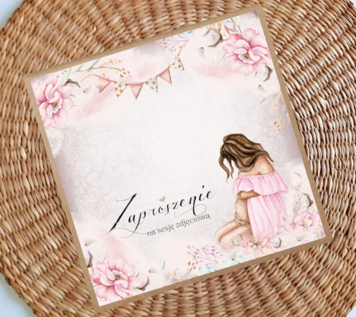 Zaproszenia na sesję na podkładzie eko z motywem graficznym. Format 13,5xm. W komplecie z białą kopertą.
