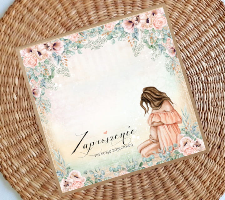 Zaproszenia na sesję na podkładzie eko z motywem graficznym.