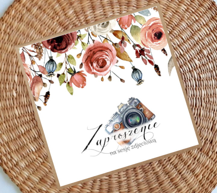 Zaproszenia na sesję na podkładzie eko z motywem graficznym. Format 13,5xm. W komplecie z białą kopertą.