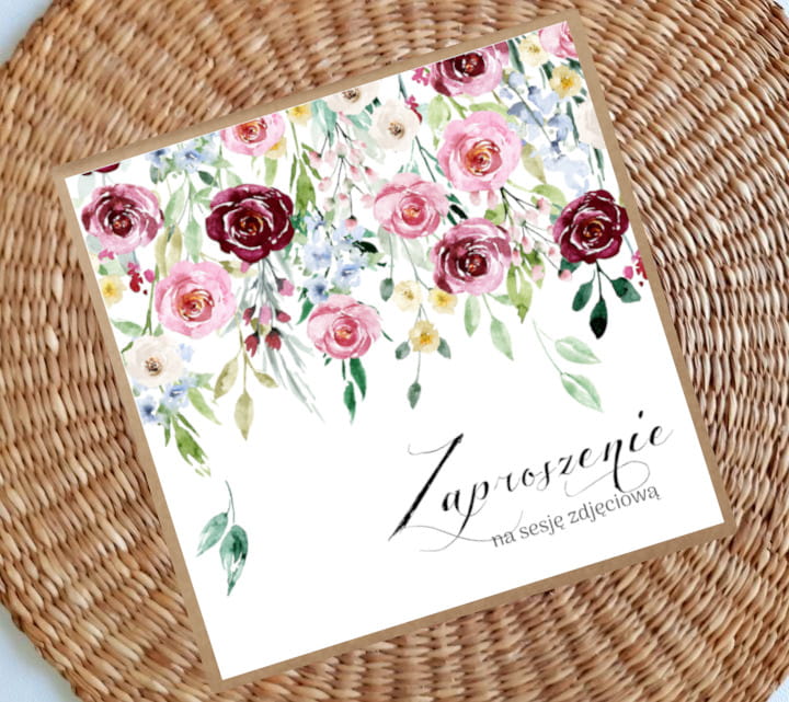 Zaproszenia na sesję na podkładzie eko z motywem graficznym. Format 14cm.