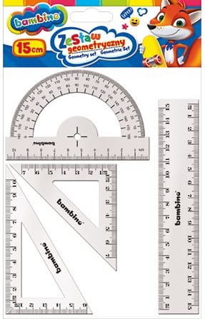 Cechy produktu: przydatny w szkole, w szczególności na zajęciach matematycznych w skład zestawu wchodzą: linijka 15 cm 2 x ekierka kątomierz