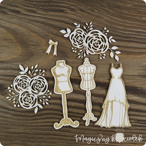 Zestaw tekturek przygotowany przez Magiczny Kociołek do kolekcji PassionScrap "About You" W zestawie znajduje się 6 elementów - ażurowe kwiaty, sukienka, manekiny, kokardka. Wymiar arkusza 15cm Grubość beermaty 1mm